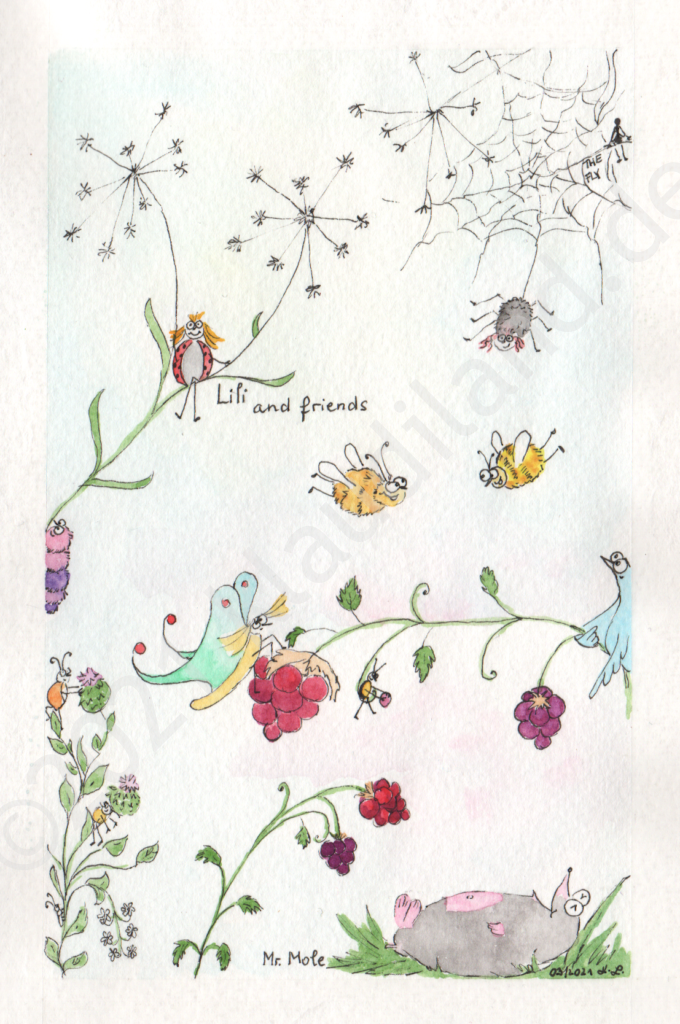 Meet Lili and her friends: Mr. Mole and The Fly. How many other creatures can you spot?